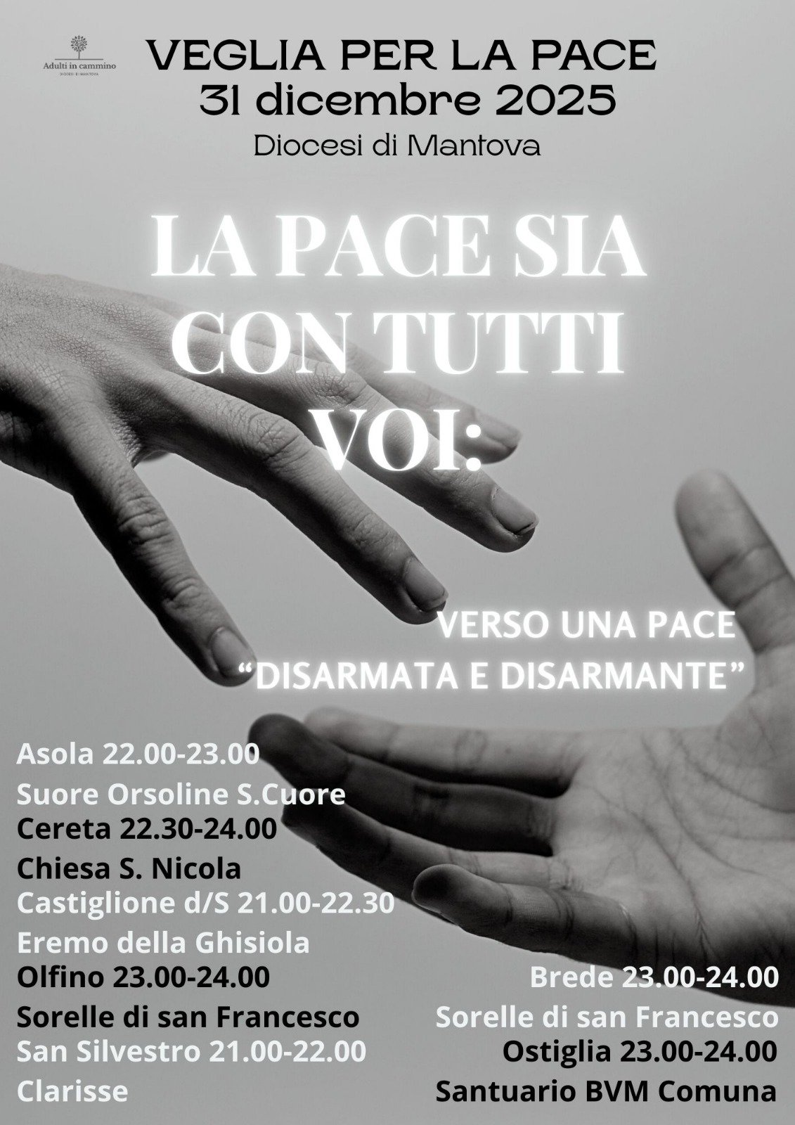 Veglie di preghiera per la pace nella notte del 31 dicembre, in vari punti della diocesi:
