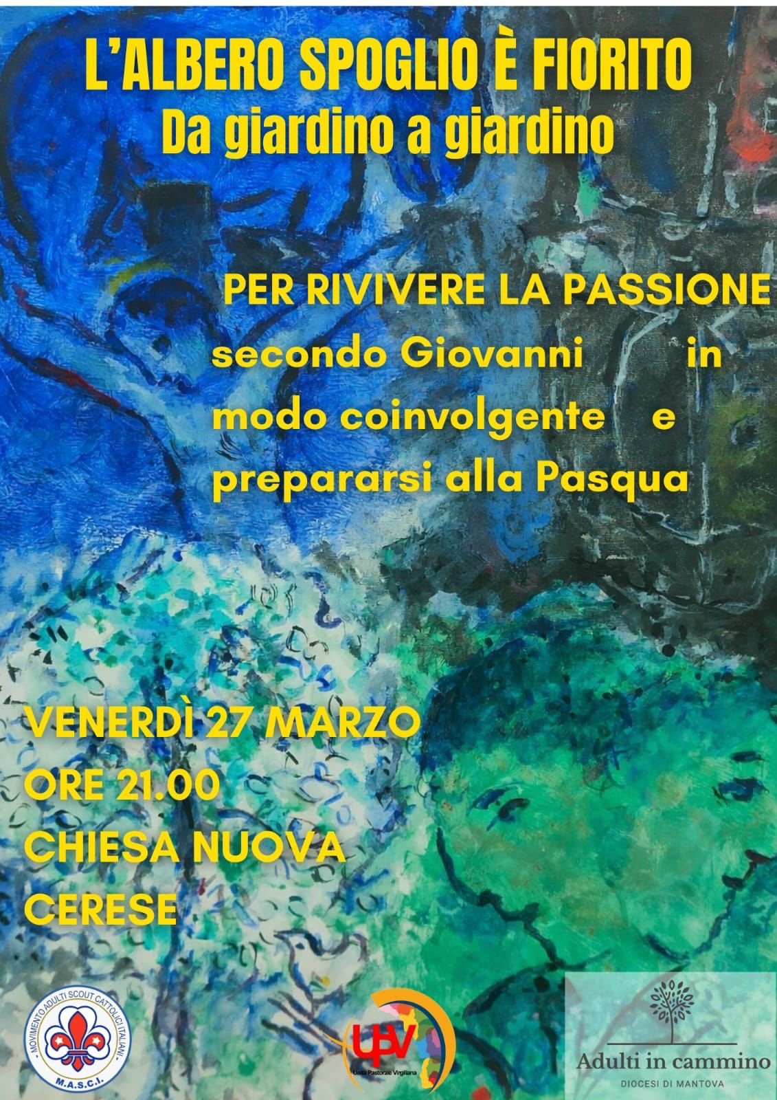 Un’esperienza intensa di fede e bellezza: Parola, musica, immagini e testimonianze si intrecciano in una sacra rappresentazione che fa rivivere la Passione di Gesù. Un cammino “da giardino a giardino” – dal Getsemani al sepolcro vuoto – per lasciarsi toccare nel cuore e riscoprire la forza viva della Pasqua.