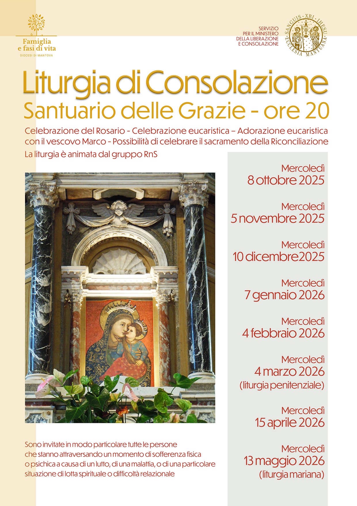 Riprende l'appuntamento mensile al santuario della Beata Vergine Maria delle Grazie di Curtatone con la liturgia di consolazione, il mercoledì dalle ore 20: