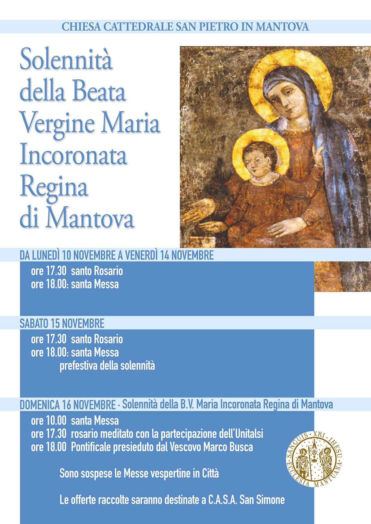 Domenica 16 novembre si celebra la Solennità della Beata Vergine Maria Incoronata Regina di Mantova.