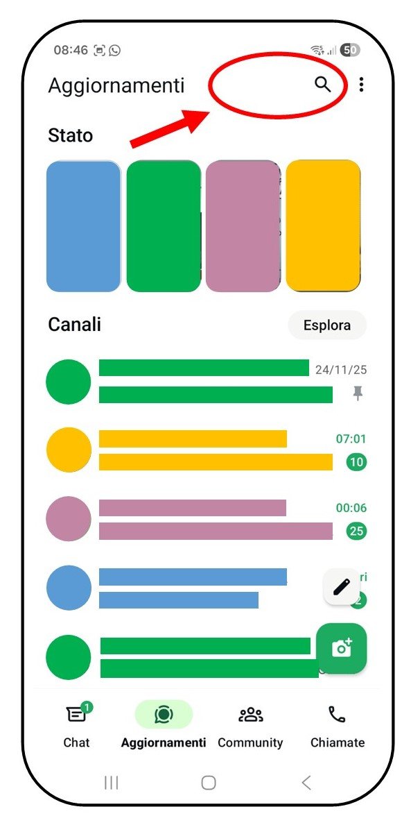In alternativa, entrare su WhatsApp e selezionare la scheda AGGIORNAMENTI.