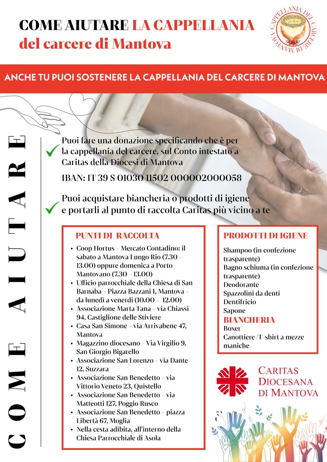 È possibile fare una donazione, specificando nella causale che è destinata alla cappellania del carcere, sul Conto intestato a Caritas della Diocesi di Mantova