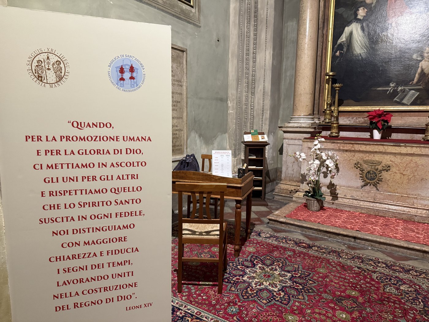Lo spazio di ascolto si svolge nella cappella di San Luigi, secondo il calendario allegato, ed è segnalato da appositi totem.